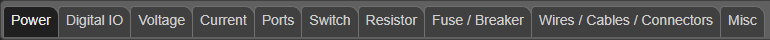 These tabs provide access to the Power, Voltage, Current, Ports etc. electrical object types.